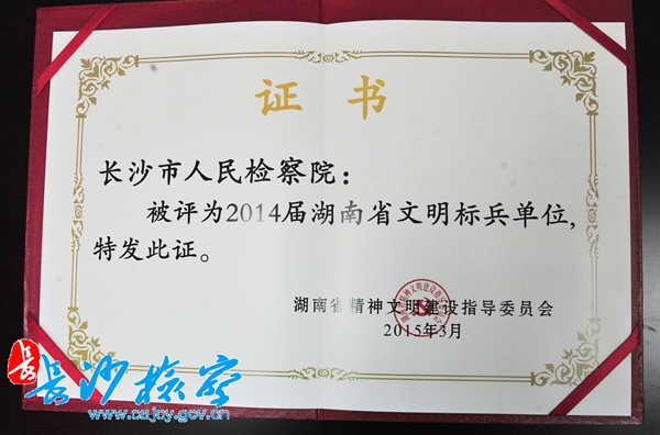 近日,从湖南省精神文明建设指导委员会得悉,市检察院首次荣获“湖南省文明标兵单位”,这是市检察院自2010年成功创建“湖南省文明单位”以来,荣获的更高等次的省级荣誉称号。