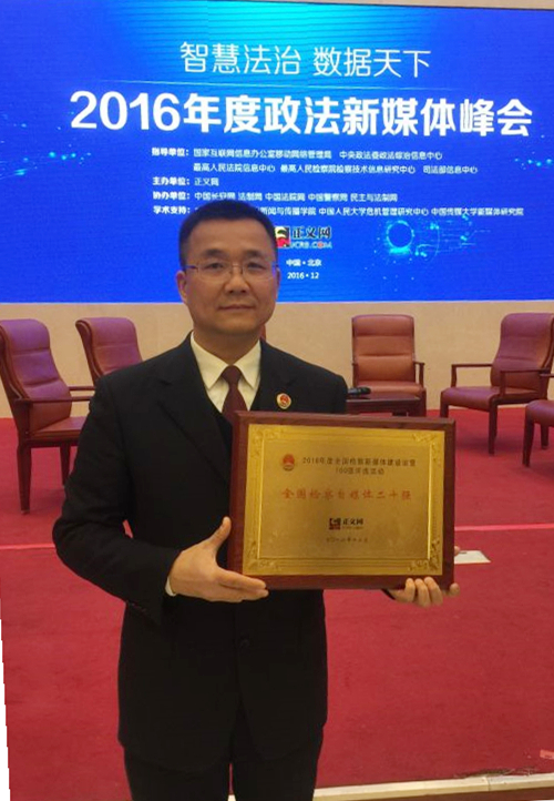 本次政法新媒体峰会由检察日报社正义网主办,国家网信办、中央政法委、最高检等多部门单位指导协办。初选采用对网络投票票数与数据统计情况进行综合考量的方式,再经过专家评审阶段后,在全国各级检察机关的新媒体平台中评选出“2016年度全国检察新媒体建设运营100强”以及20个“特殊贡献奖”。