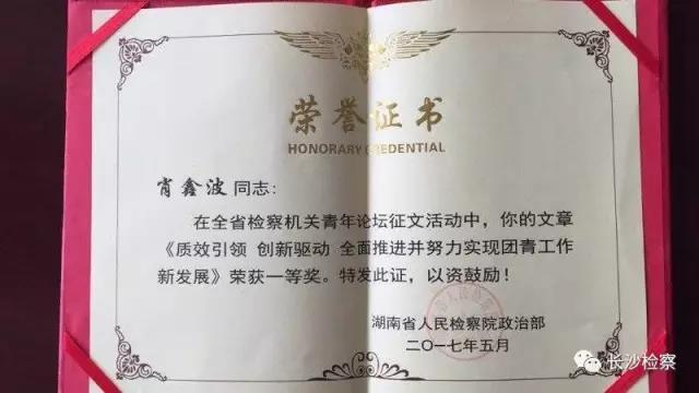 日前,我市检察机关青年干警在湖南省脱裤吧 开展的“五四火炬点亮中国梦,青春检察扬帆立潮头”为主题的征文活动中喜获佳绩。