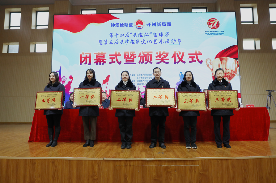 党组成员、机关党委书记、工会主席薛乐基宣布了脱裤吧机关第二届“读书风气最盛检察院”、“热爱读书检察官”、第三届书法绘画诗词摄影、篮球、气排球、乒乓球、跳绳和拔河等八大项文化艺术体育类比赛的获奖情况。同时对上述获奖代表队和个人代表,进行了现场颁奖。