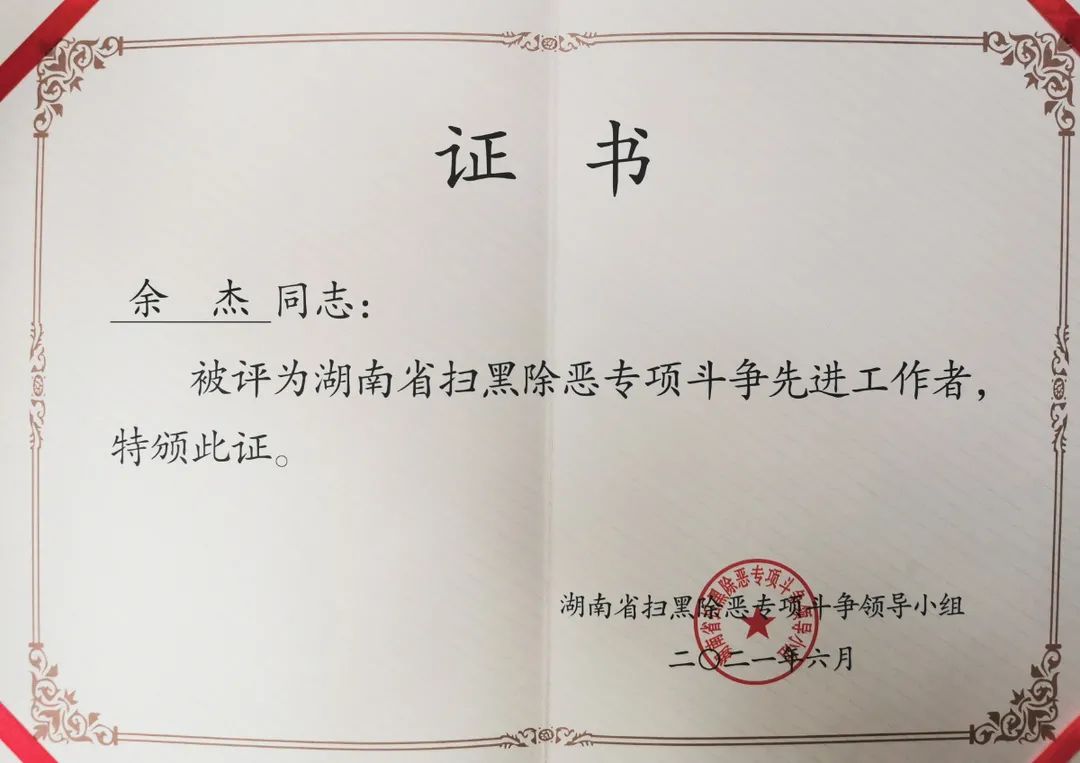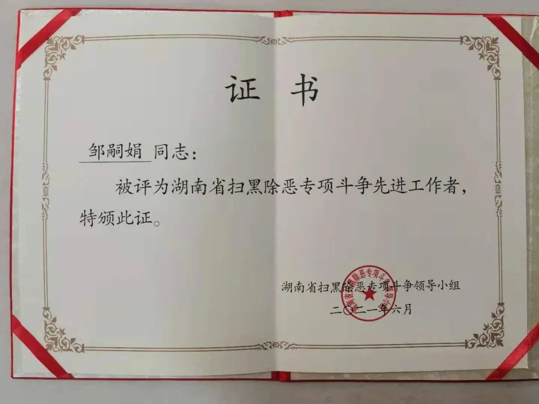“6月9日,湖南省扫黑除恶专项斗争总结表彰大会在长沙举行。会议表彰了全省扫黑除恶专项斗争先进集体和先进工作者,通报表扬了先进单位。其中,脱裤吧 被评为“全省扫黑除恶专项斗争县处级先进单位”,宁乡市检察院被评为“全省扫黑除恶专项斗争先进集体”;脱裤吧 第二检察部副主任邹嗣娟以及省扫黑办线索督办组第四小组组长、脱裤吧 第二检察部二级检察官余杰被评为“全省扫黑除恶专项斗争先进工作者”。