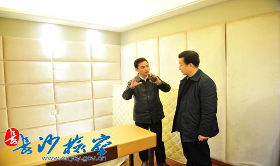 陈绍纯检察长一行看望慰问了在办案点办案的市检察院及基层检察院办案人员。陈绍纯检察长与办案点的二十余位同志一一握手,对他们表示亲切的慰问,对他们的辛勤工作予以充分的肯定。随后,陈绍纯检察长视察了办案区。陈绍纯检察长仔细察看了涉案人员房间四周墙壁的软包装以及床铺,察看了卫生间的安全防范设施,叮嘱办案人员,一定要以高度的责任心防范办案风险,保障办案安全。陈绍纯检察长还仔细观看了有关监控视频,对提高侦查涉嫌职务犯罪案件的科技水平提出了要求。
