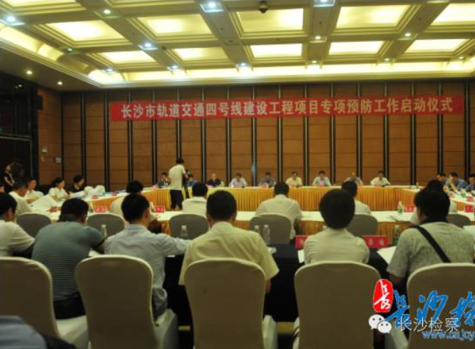 、长沙市轨道交通集团有限公司在望城区晟通国际商务中心举办“轨道交通4号线专项预防工作”启动仪式。参加仪式的检察机关和轨道公司以及所有地铁4号线参建施工监理单位负责人,首先到4号线一标中建五局土木公司一项目部参观了项目施工现场以及项目的廉政文化建设,听取了中建五局开展项目预防职务犯罪工作的情况汇报;启动仪式主会场由市轨道公司党委副书记、纪委书记、监事会主席黄阳主持,仪式上,市院预防处长阎媚宣读了《专项预防工作实施方案》,市检察院和市轨道公司的领导为“专项预防工作领导小组办公室”授了牌,各建设方和参建方互签了廉政承诺书并向各自的领导呈送,各项目部与施工辖区检察院签署了《项目共建协议书》,轨道交通4号线建设公司总经理邓武代表各建设单位、参建单位作出了《崇廉颂廉,依法依规》的共建倡议,以“投资+施工总承包”方式投资建设4号线全线工程的中建五局、中国水电八局在启动仪式上作出了建设“廉洁轨道”的郑重承诺,望城区委常委、政法委书记苏春光代表望城区委、区政府作了主动对接、主动作为,为项目建设提供更加精准的服务和保障的致辞;市检察院党组副书记、徐百坚副检察长代表全市参与专项预防监督工作的检察机关,市轨道公司党委书记、彭旭峰董事长代表市轨道公司专项预防工作各责任部门在启动仪式上都发表了讲话;望城区委常委、政法委书记苏春光代表望城区委、区政府致了欢迎辞;省院预防处谭庆之处长受邀全程参与指导并对专项工作的开展作了指示。