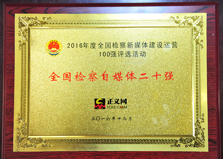 本次政法新媒体峰会由检察日报社正义网主办,国家网信办、中央政法委、最高检等多部门单位指导协办。初选采用对网络投票票数与数据统计情况进行综合考量的方式,再经过专家评审阶段后,在全国各级检察机关的新媒体平台中评选出“2016年度全国检察新媒体建设运营100强”以及20个“特殊贡献奖”。