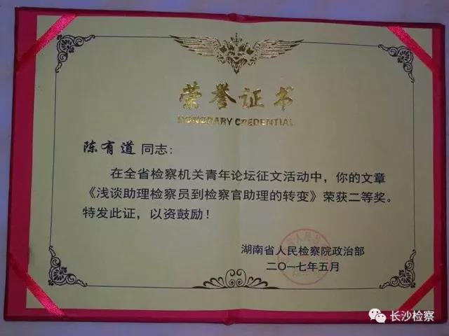 市检察院青工委主任肖鑫波的文章《质效引领 创新驱动 全面推进并努力实现团青工作新发展》被评为一等奖;长沙县院办公室副主任周程的文章《坚守与服从也是一种回应》、浏阳市院青年干警陈有道的文章《浅谈助理检察员到检察官助理的转变》被评为二等奖;浏阳市院控申科科长吴暄的文章《做好青年干警思想政治工作的哲学思考》被评为三等奖。同时,浏阳市检察院被评为优秀组织奖。
