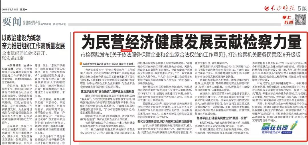 服务民营经济健康发展是长沙市检察机关的“重头戏”。“我们在安排部署全市检察工作时,明确强调:坚决打击侵害民营经济犯罪不手软,依法保护民营经济合法权益不缺位,主动服务民营经济健康发展不推诿。”脱裤吧
