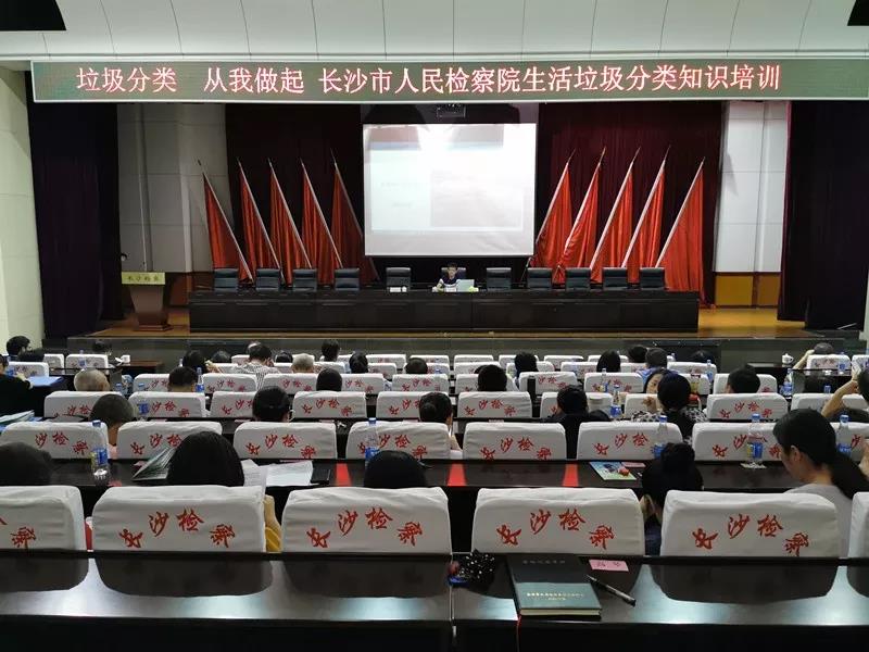 组织全体干警举行生活垃圾分类知识培训,长沙市市直机关垃圾分类工作指定专家芦杰老师授课。