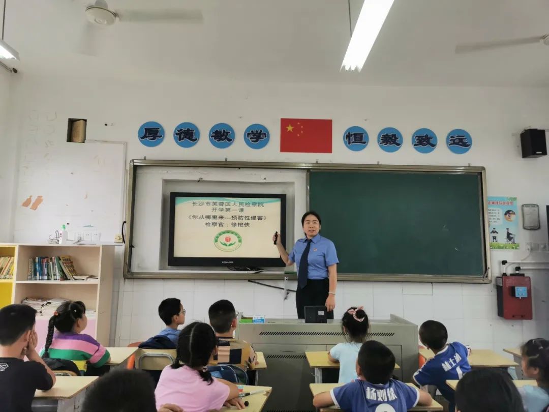 9月8日,天心区检察院协同湖南李丽心灵教育中心教育讲师走进长沙市天心区井岗小学,通过互动小游戏、观看性教育动画短片等方式为该校五年级200名学生开展了主题为“我的身体我做主”的性教育知识宣讲,课堂上还启动了“给检察官的悄悄话”信箱。