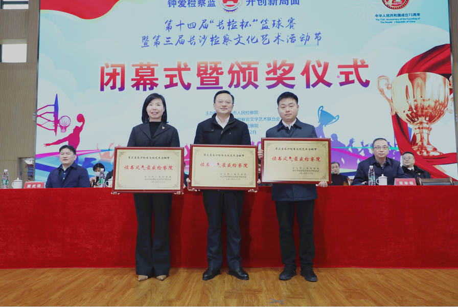 党组成员、机关党委书记、工会主席薛乐基宣布了脱裤吧机关第二届“读书风气最盛检察院”、“热爱读书检察官”、第三届书法绘画诗词摄影、篮球、气排球、乒乓球、跳绳和拔河等八大项文化艺术体育类比赛的获奖情况。同时对上述获奖代表队和个人代表,进行了现场颁奖。