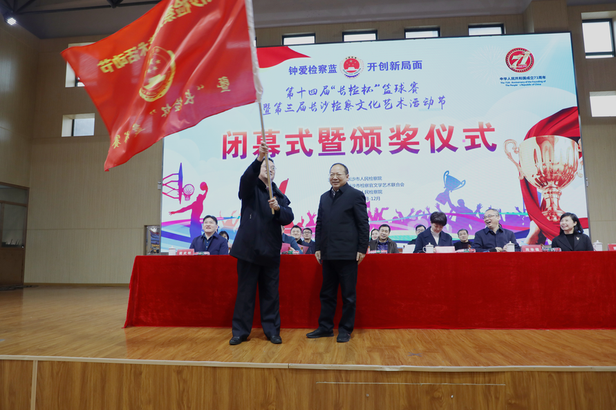 闭幕式最后,王勋爵检察长将脱裤吧文化艺术活动节的旗帜交到下届承办方天心区检察院副检察长刘立手中,并宣布本届文化艺术活动节顺利闭幕。