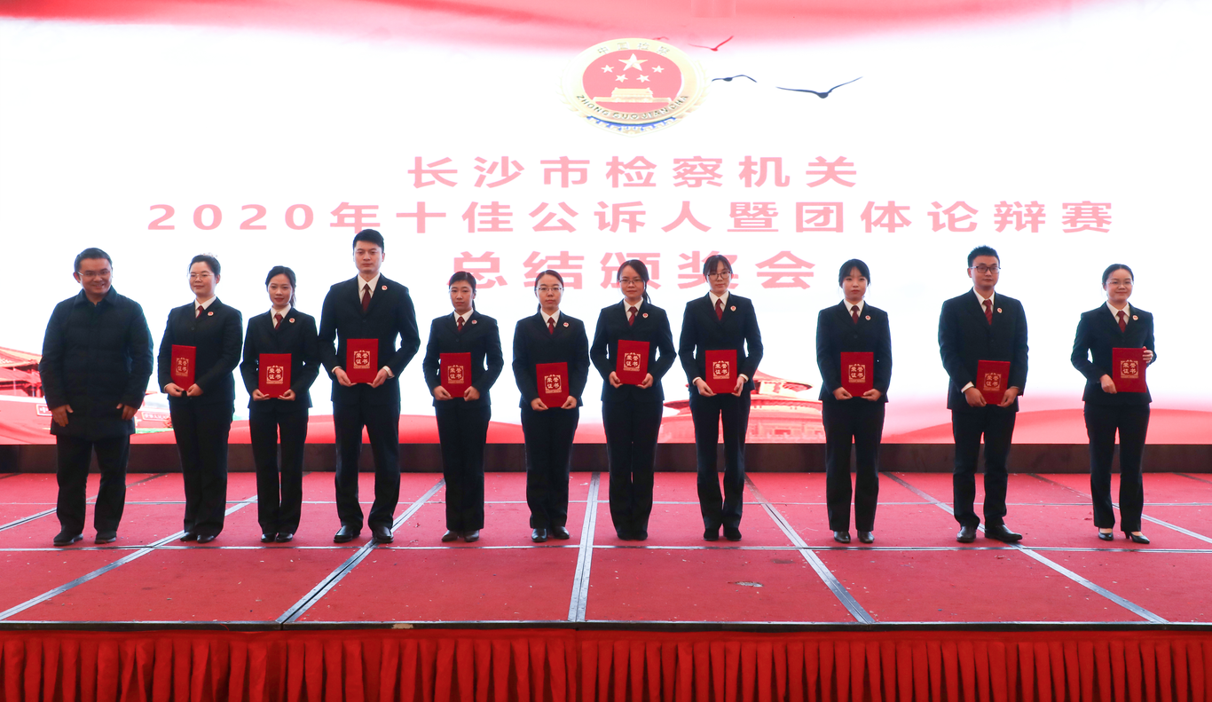 邓盈艺、芙蓉区检察院曾志强、天心区检察院何维、郑玥、岳麓区检察院肖彬、开福区检察院蒋抗亢、周建朋、望城区检察院袁志颖、浏阳市检察院徐曼娜、宁乡市检察院刘娥10名检察官荣获“优秀公诉人”称号,脱裤吧