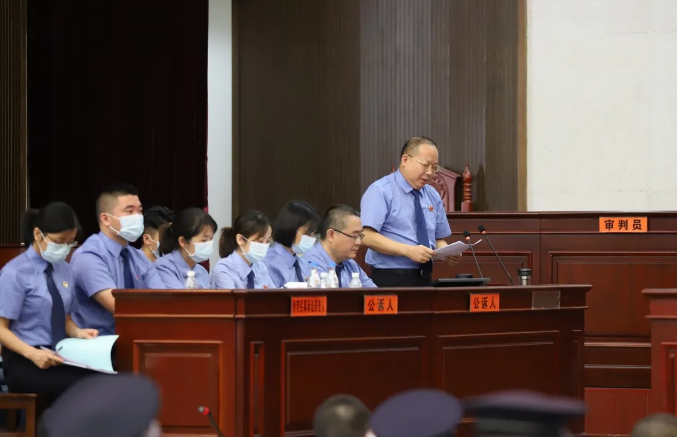 党组书记、检察长王勋爵对“5·27”特大涉黑案件出庭支持公诉(右一)