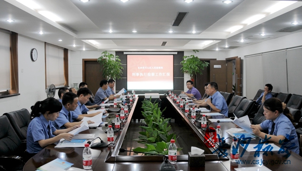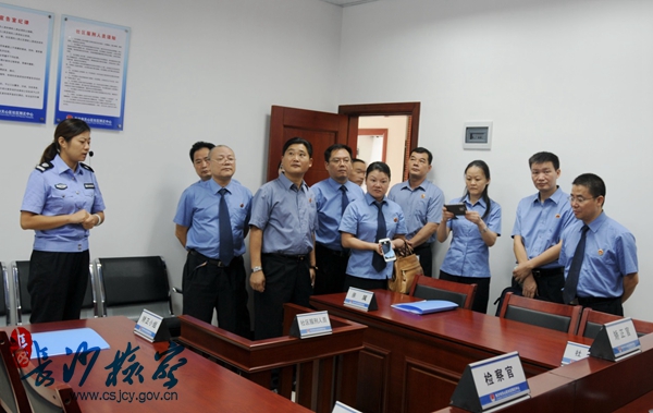 8月27日下午,出席全省刑事执行检察工作会议的代表人员,在湖南省脱裤吧 刑事执行检察处处长李胜昔带领下,来天心区检察院现场观摩刑事执行检察工作。