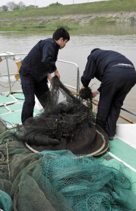 的督促下,长沙市渔政站与区农林水利局进行了一次联合禁鱼执法行动。该次行动共出动执法船只两艘,人员19人,除渔政工作人员外,还有4名检察官现场监督。执法船只行驶在捞刀河十余公里的水域上,用高音喇叭反复播放长沙市政府关于湘江长沙段及其支流部分水域自2016年4月1日起实施常年禁鱼的通告。执法人员立于船头对沿途少数捕鱼人员进行劝阻和宣传教育。当船行至汉回村地段时,发现有人还新购置电鱼网及拦河捕捞网等渔具,当即进行了没收。这次行动共发放宣传资料30余份,现场对10余名捕捞者进行了教育,没收电鱼网2副,长濠渔网4条,并当场进行了烧毁。