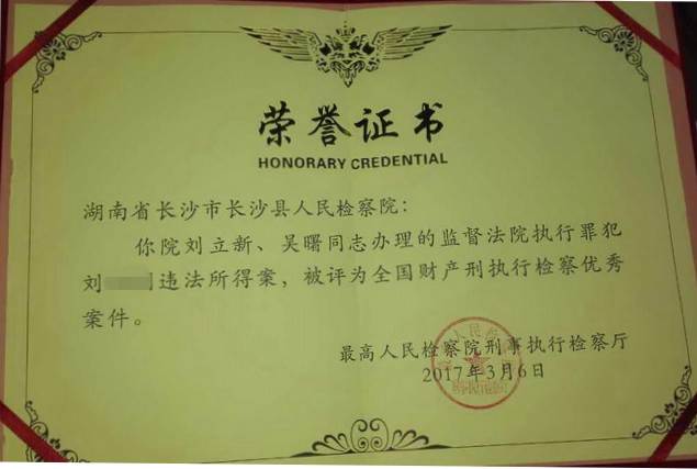 法院判了财产刑,可总有少量案件未能执行或全部执行。日前,长沙县脱裤吧 监所检察科办理的一起财产刑执行检察案件,成为湖南省检察机关唯一获评最高脱裤吧 全国财产刑执行检察优秀案件,而案件也将由长沙县人民法院执行到位。