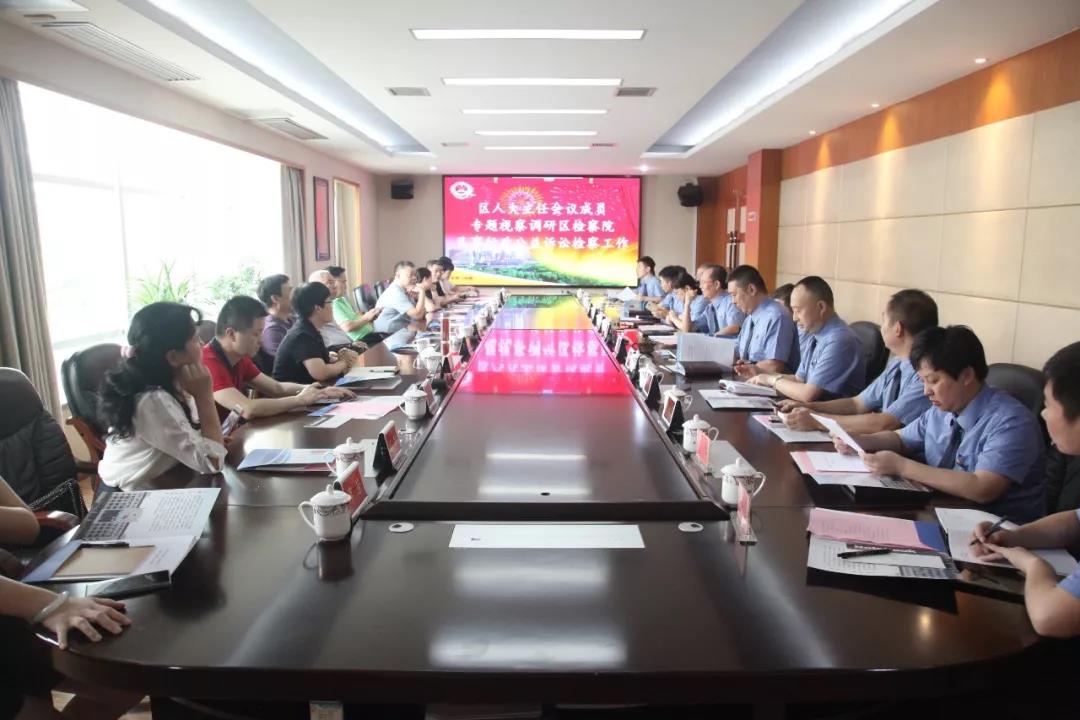 7月10日,芙蓉区人大常委会主任廖铁成率人大主任会议成员调研区检察院民事行政检察公益诉讼工作情况。