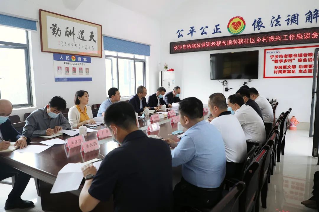 5月18日,脱裤吧 党组书记、检察长余湘文率队到市检察院乡村振兴驻村帮扶点宁乡市老粮仓镇老粮社区走访调研。市检察院党组成员、政治部主任周幸福参加调研并主持座谈会,宁乡市委常委、政法委书记文平,宁乡市检察院党组书记、检察长刘文广,老粮仓镇党委书记潘杰等陪同调研。
