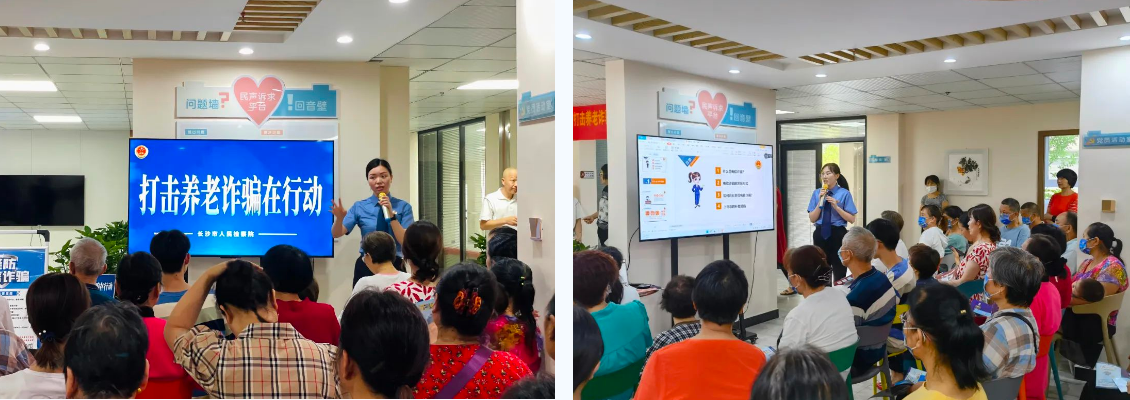 自打击整治养老诈骗专项工作开展以来,天心区检察院始终坚持打击与预防并重,通过发放宣传手册、开展法治宣讲进社区等系列宣传活动,帮助老年人提升识骗防骗能力。