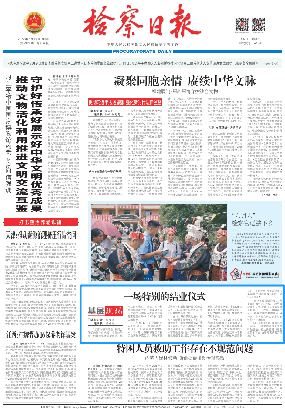 ▲《检察日报》2022年7月10日 第01版:要闻