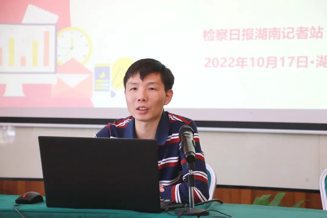 《检察日报》湖南记者站负责人张吟丰结合新时代检察宣传理念,从会议活动报道、案例报道、经验报道、人物报道、图片新闻等五个方面,就如何创作出可读性高、影响力深、传播法治正能量的检察新闻宣传作品为大家授业解惑,激励学员自觉立足职能,切实挖好检察“富矿”。