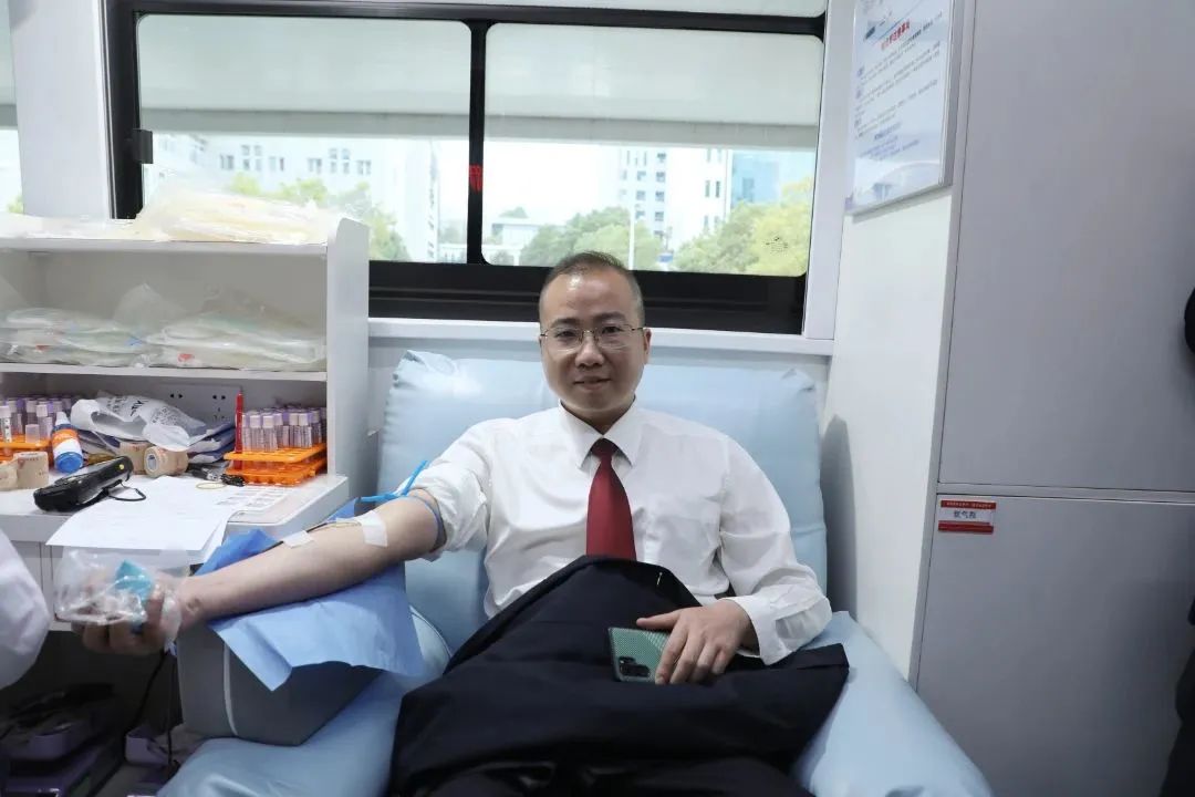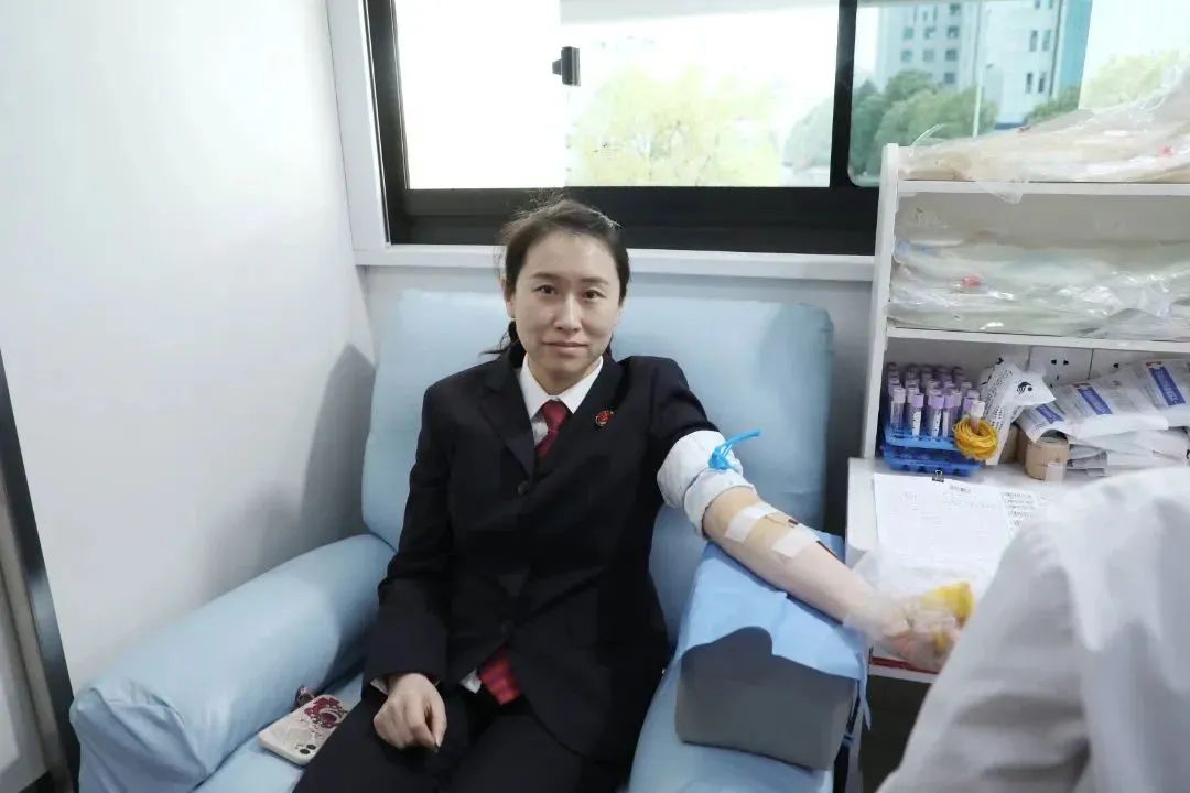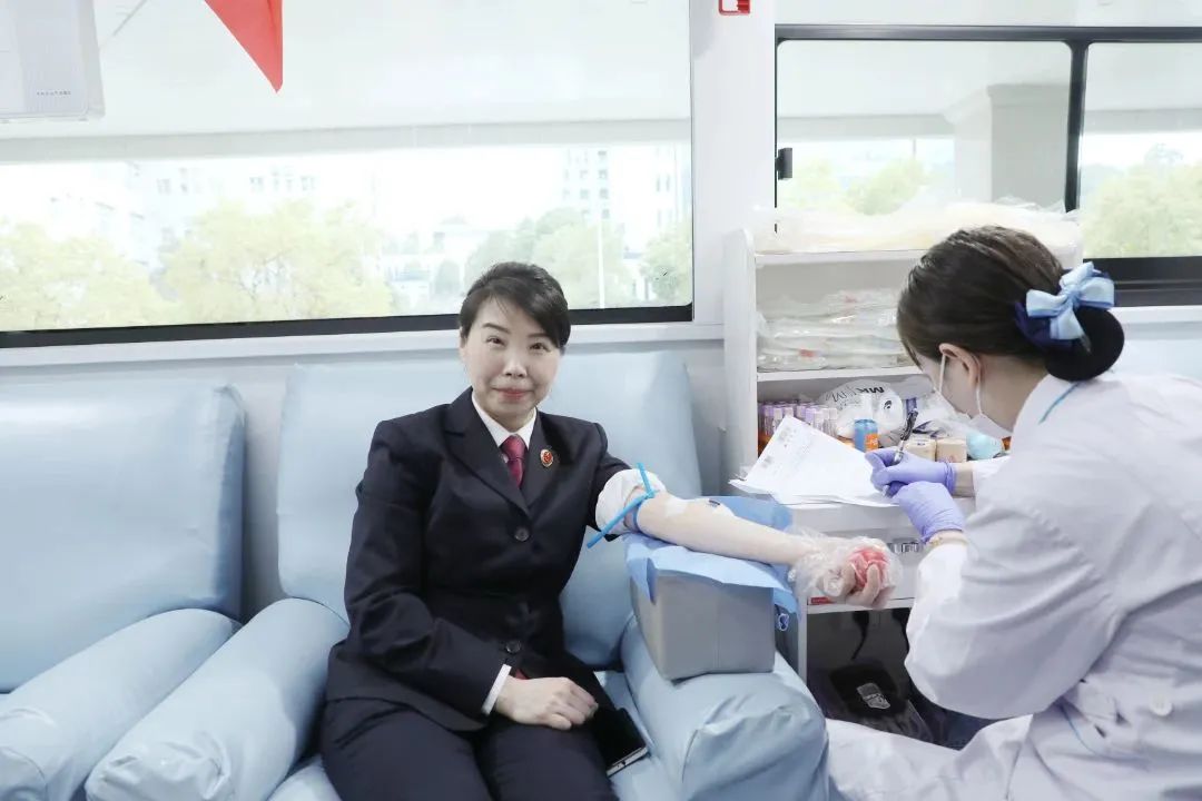 献血活动现场,市检察院党组成员、副检察长陈芳率先挽起衣袖、伸出手臂,献出自己的爱心。其余志愿者也按照医护人员的引导,进行登记填表、健康征询、血液检测等,最终将一颗颗赤诚的爱心化作了一袋袋温暖的血液。此次无偿献血,市检察院共有26名志愿者成功献血,共计献血9100ml,表达了检察人员对人民群众“血浓于水”的情谊。
