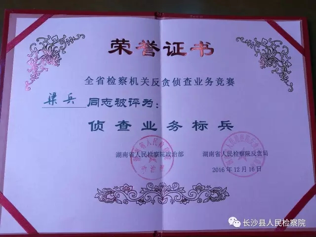 最让梁兵印象深刻的,是2014年办理的长沙县某村支部书记曹某贪污、挪用公款、行贿案。曹某虽是村干部,却贪污95万元、挪用公款48万余元、行贿15万元。小“官”巨贪,让人震惊。这个案件,也是长沙县域内有影响力的案件之一。然而这么一个大案,线索来源于长沙县检察院反贪局立案侦查的另一起职务犯罪案件,仅仅是拆迁资金的一点点漏洞,梁兵就敏锐地发现了其中可能“大有文章”。通过细致地分析,多处调取书证,印证了他的判断。他果断地冻结曹某设立小金库,从而打开了案件的突破口。在找到了曹某贪污的铁证后,又通过强化造势、层层推进、虚实结合、强势谋略的方式,迅速攻破了曹某的心理防线,拿下了这个大案。案件顺利办下来了,谁也不知道梁兵为此付出了多少努力:连续五天五夜守在办公室分析书证,找侦查方向;不懂财务数据,当即买书边学边实践;为了更快让曹某“下山”,研究犯罪心理学寻找曹某的“痛点”和“软肋”。正是凭着这股蛮劲,什么疑难复杂案件在他看来都是纸老虎。