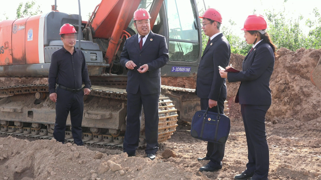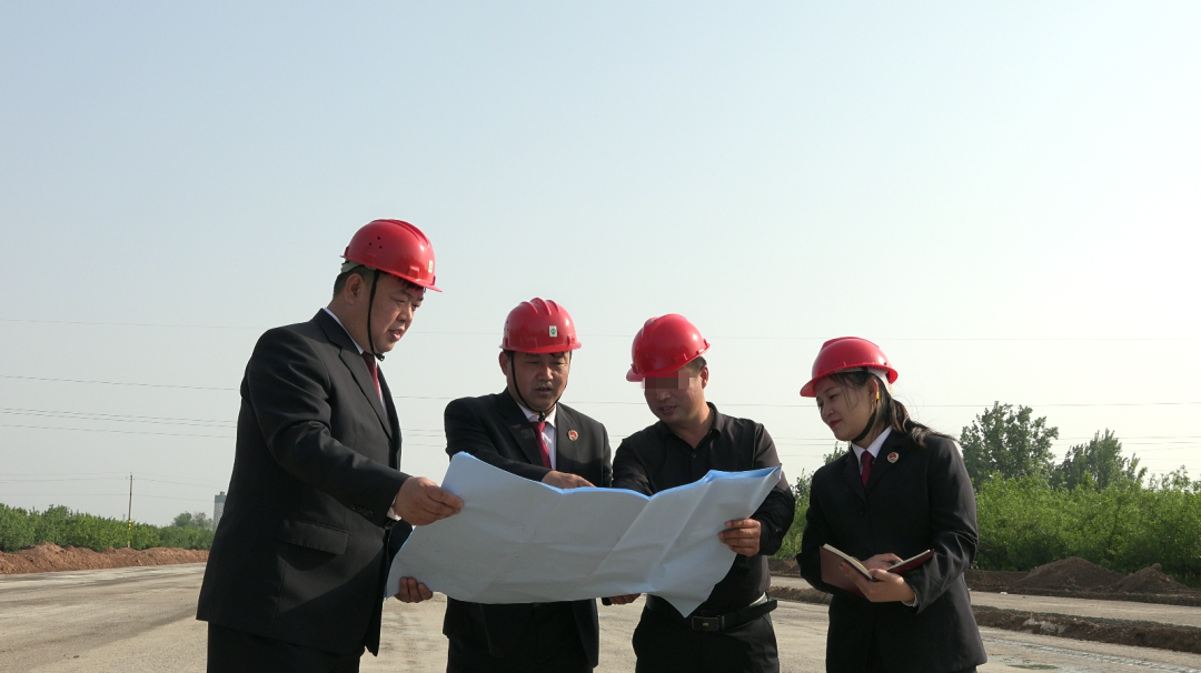 魏县检察干警实地走访施工现场调查工程项目剥离耕作层情况。
