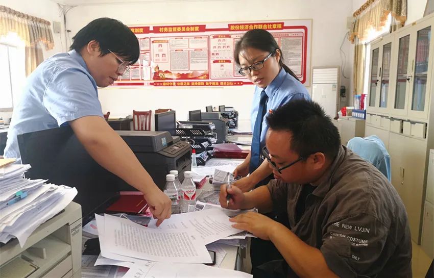 上林县检察院办案人员向村干部调查核实案件情况。