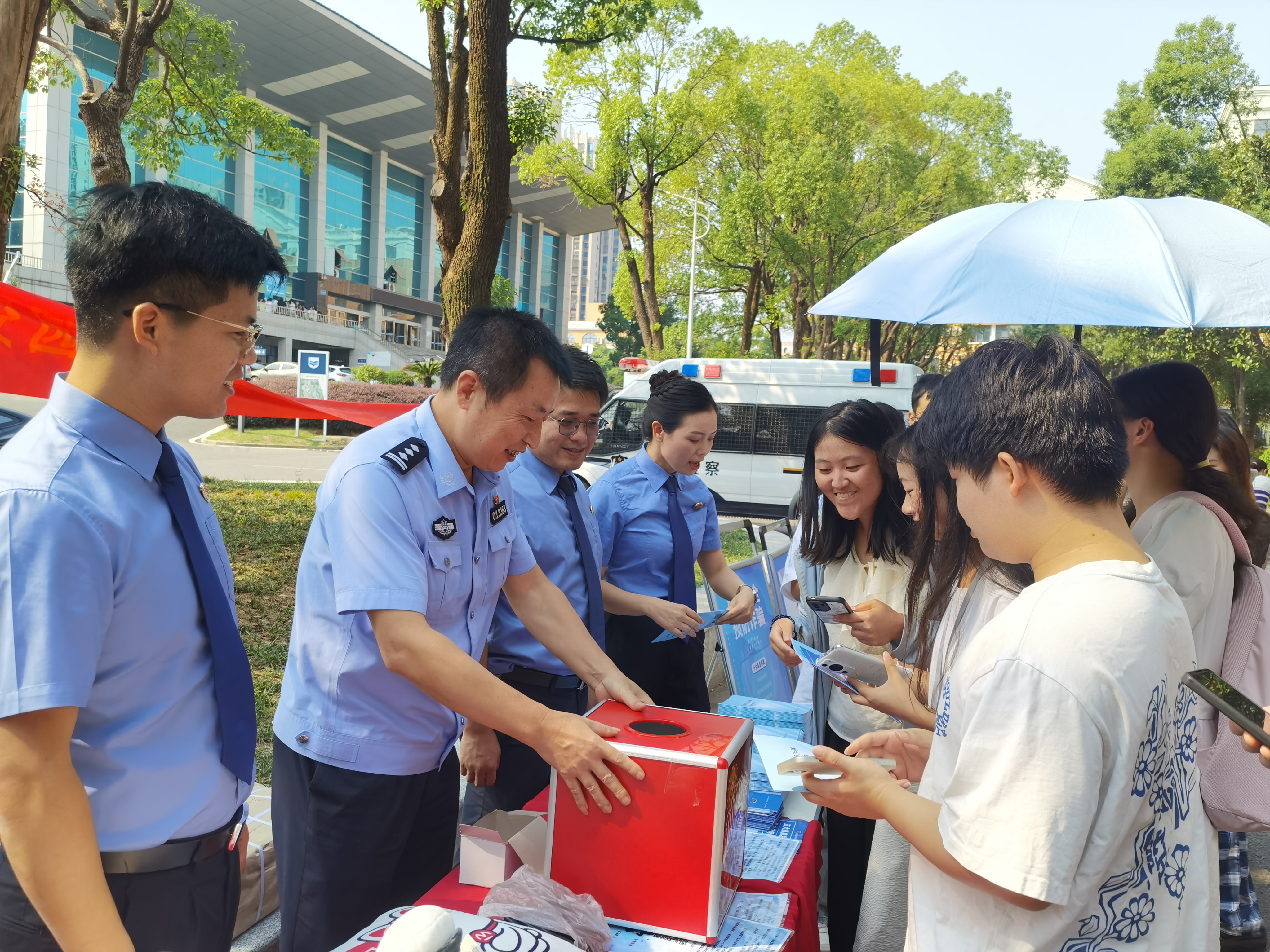 活动期间,众多学生积极参与,就自己关心的问题现场向检察官和民警提问。工作人员耐心解答,并通过有奖问答等形式,激发了同学们的学习兴趣。据初步统计,此次宣传活动吸引了数百名师生的关注,发放了近千册余册宣传资料,活动现场气氛热烈。