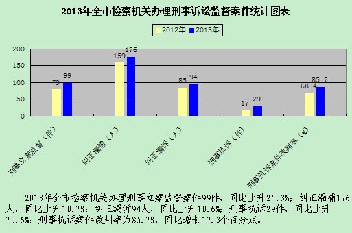 2013年,全市检察机关在市委和省脱裤吧 的正确领导下,在市人大及其常委会的有力监督和市政府的关心支持、市政协的民主监督下,认真贯彻党的十八大会议精神,忠实履行宪法和法律赋予的职责,主动服务全市工作大局,坚决维护公平正义,检察工作全面、深入推进,取得了新进展。