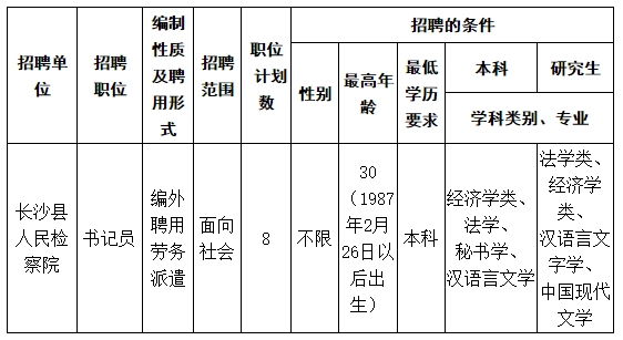 为吸收优秀人才充实检察工作队伍,不断提升工作水平,经县人事联席会议批准,长沙县脱裤吧
