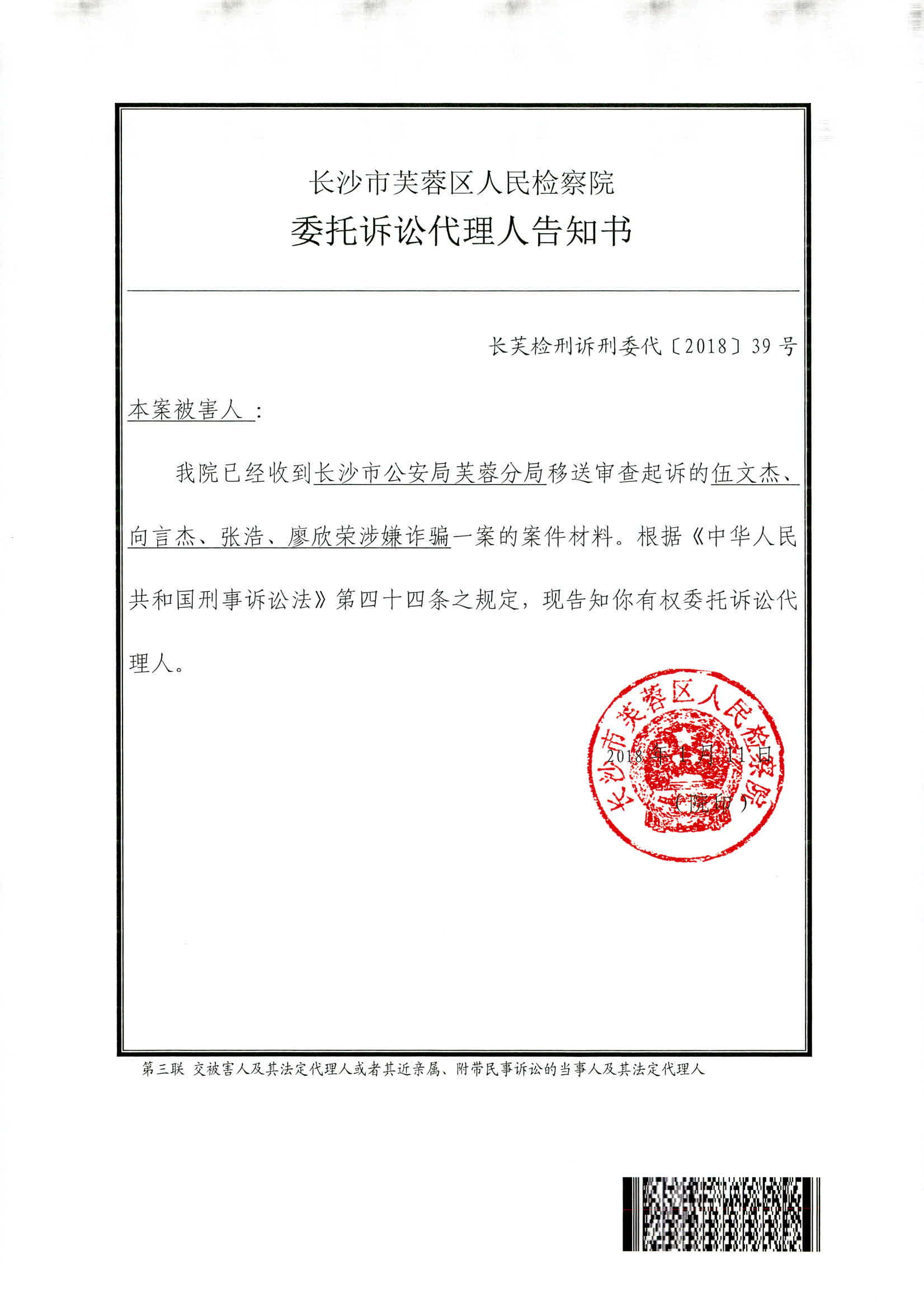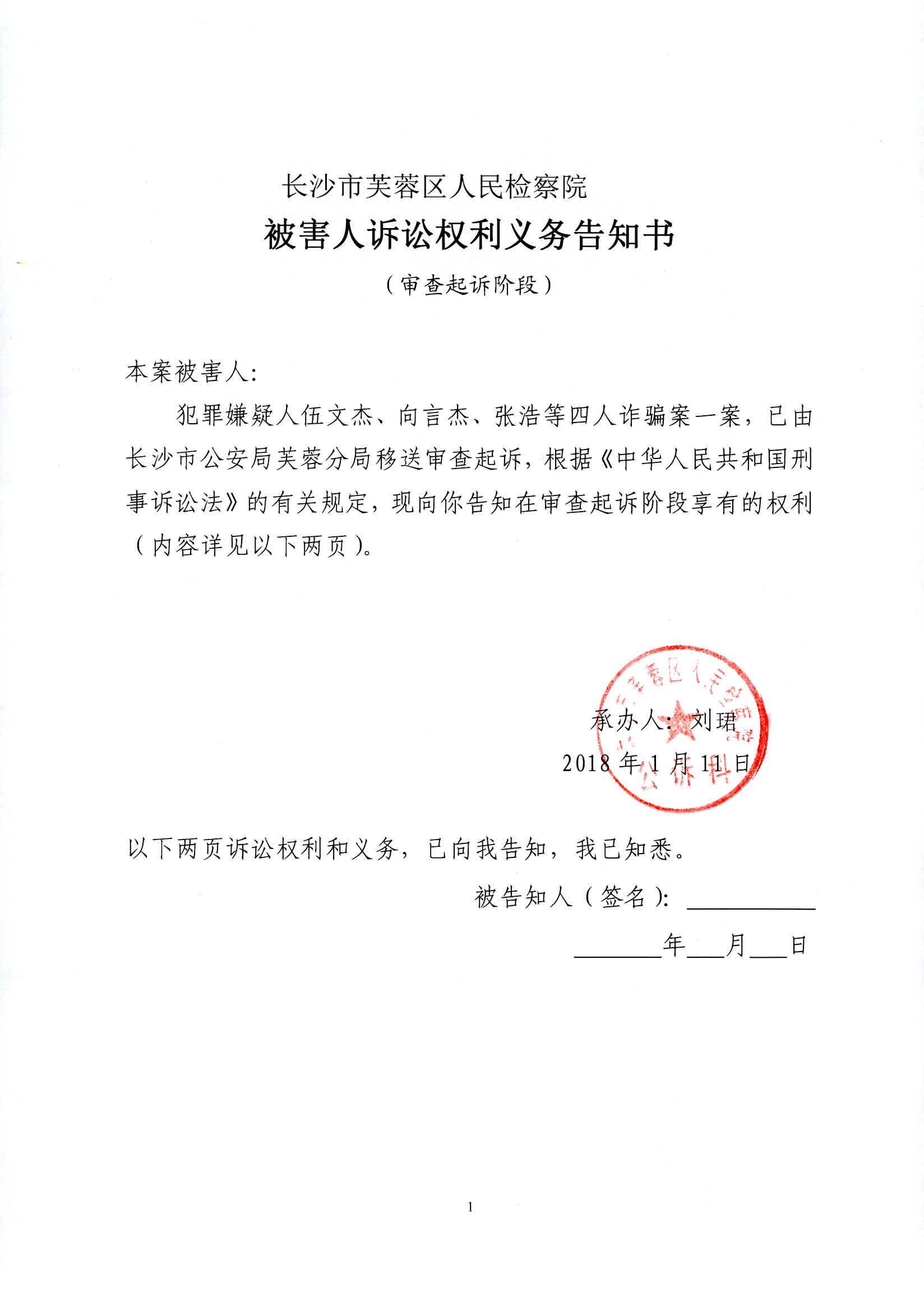 伍文杰等人涉嫌诈骗案权利义务告知书