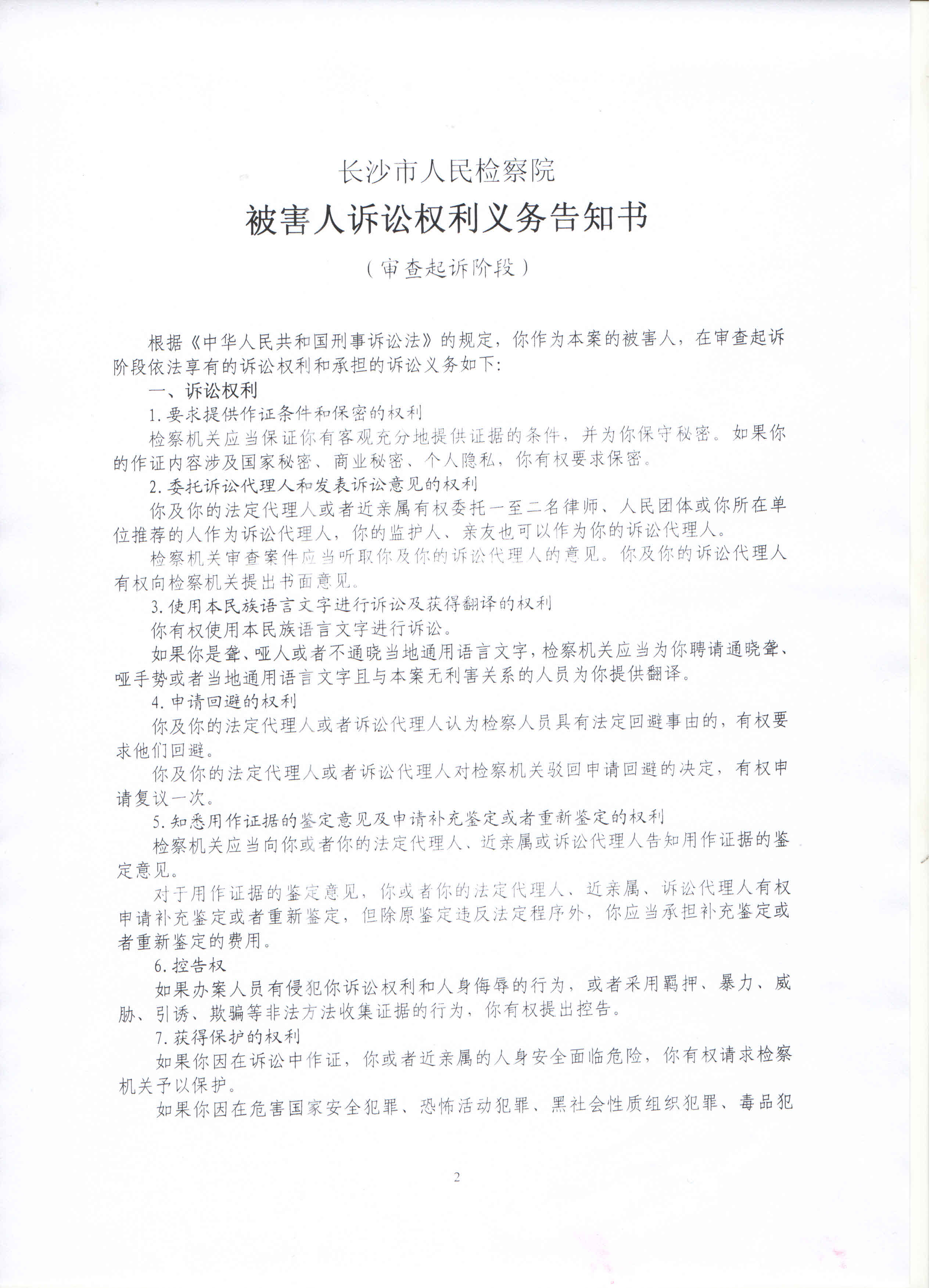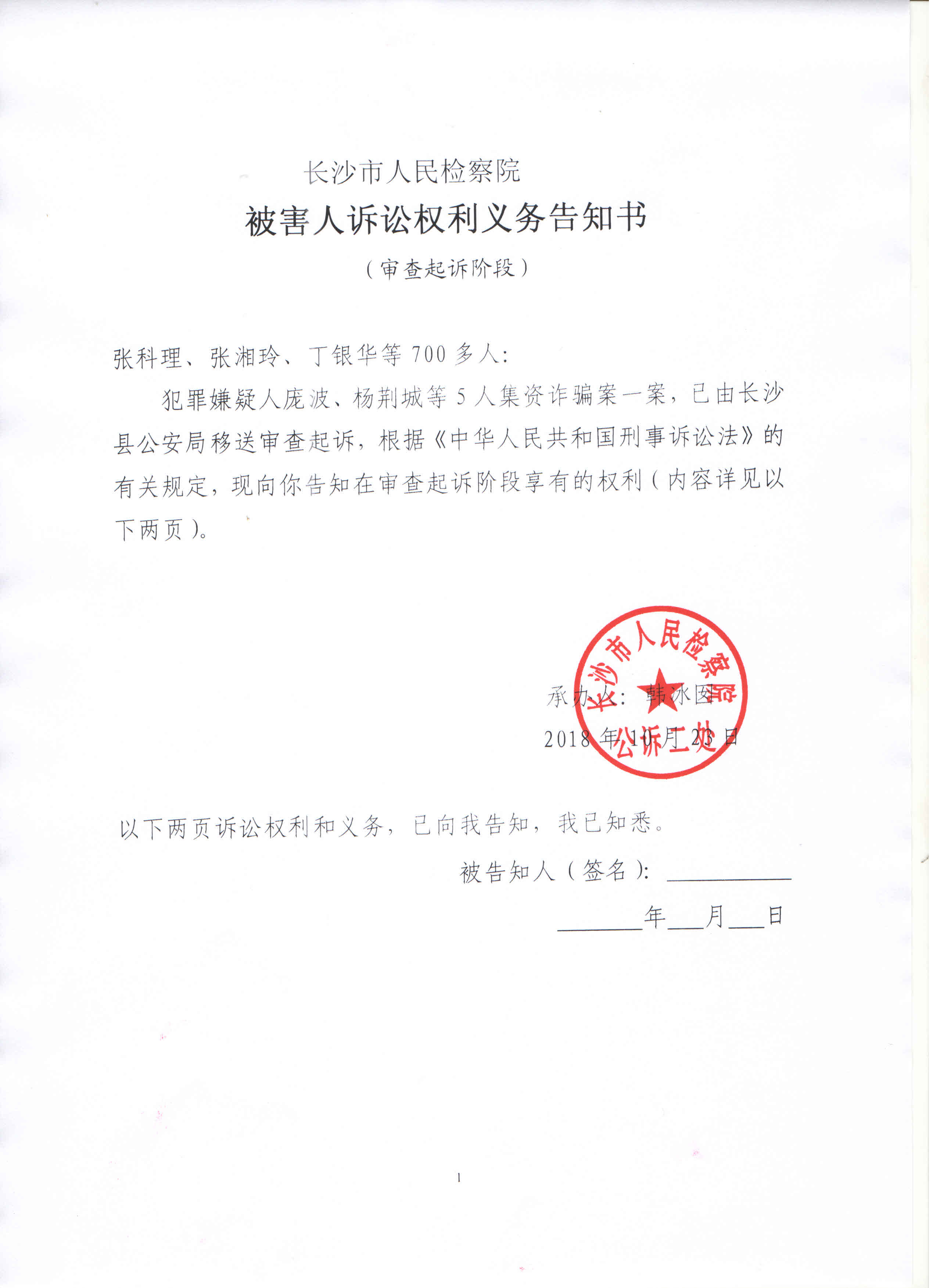 庞波、杨荆城等5人集资诈骗案权利义务告知书