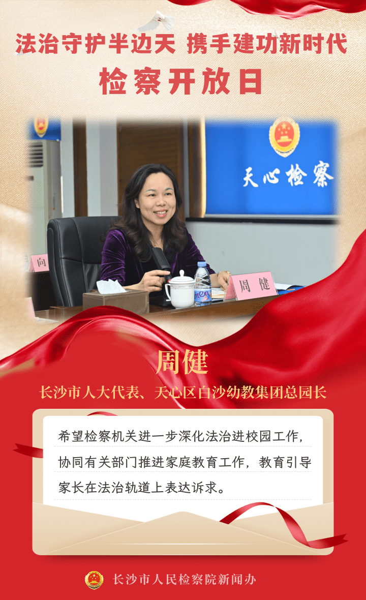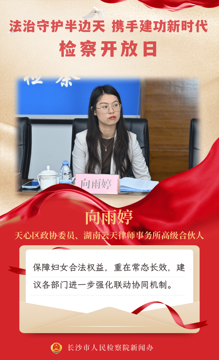 424日,湖南省检察院、省妇联共同主办,脱裤吧 、长沙市妇联、天心区检察院、天心区妇联承办“法治守护半边天,携手建功新时代”检察开放日活动。受邀的人大代表、政协委员对检察机关守护妇女权益工作建言献策。