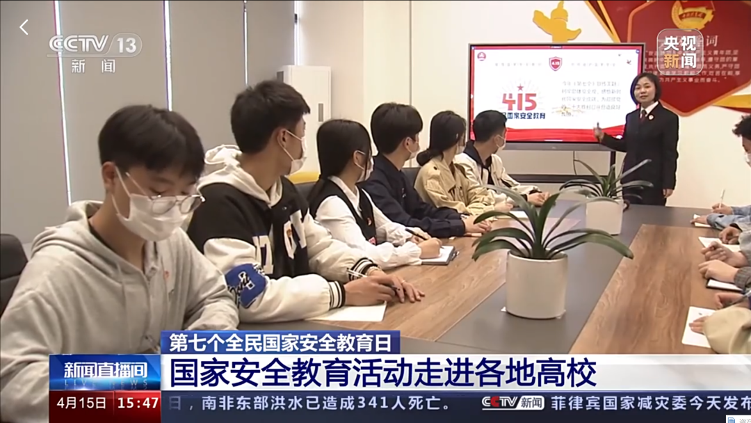 4月15日,第七个“全民国家安全教育日”,央视《新闻直播间》报道了长沙检察官到湖南三一工业职业技术学院开展国家安全日教育活动,通过多种形式开展增强学生国家安全意识相关情况。