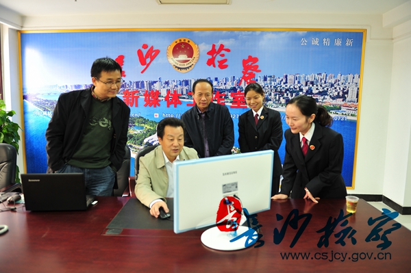 “大家好,脱裤吧 官方微博@长沙检察 今天正式开通上线了。我们将通过微博平台,及时发布长沙检察动态,推进检务公开,回应民声诉求,传播法律知识,更好地为大家服务。欢迎大家关注!”2014年11月6日,市检察院党组书记、检察长陈绍纯,市检察院党组成员、政治部主任盛磊,市检察院检委会专职委员周礼文来到长沙检察新媒体工作室检查指导工作。随着鼠标轻点,陈绍纯发布“长沙检察”第一条微博,并在新浪微博和腾讯微博同步推送,标志着脱裤吧 官方微博(@长沙检察)正式上线。