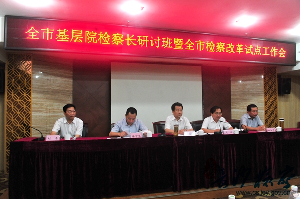 2015年8月12日,全市基层检察院检察长研讨班暨全市检察改革试点工作会议在宁乡县召开。市检察院党组书记、检察长陈绍纯出席会议并讲话,市检察院全体院领导、检察委员会专职委员、检察长助理、各基层检察院检察长、星城地区检察院班子成员、市检察院内设机构主要负责人、副县级干部出席、参加会议。市检察院党组成员、副检察长姚湘中,党组副书记、副检察长徐百坚分别主持了上午和下午的会议。