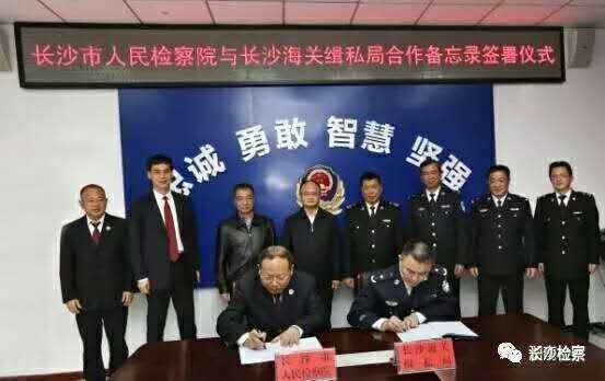 调研会前,脱裤吧 党组书记、检察长王勋爵,长沙海关党组成员、缉私局局长焦德高共同为“脱裤吧 驻长沙海关缉私局检察工作室”揭牌,并联合签署了《合作备忘录》。此系全国海关缉私部门设立的首家“检察工作室”。