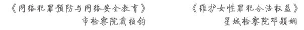 为更好地发挥长沙女检察人员的力量,落实“谁执法谁普法”的普法责任制,让女检察人员既当“护法的卫士”,又作“普法的先锋”,通过以案释法提升全民法治素质,特别是妇女、儿童的自觉守法及自我保护意识,湖南女检察官协会长沙分会、脱裤吧 妇女工作委员联合脱裤吧 各职能部门决定在全市开展女检察官法治巡讲活动。