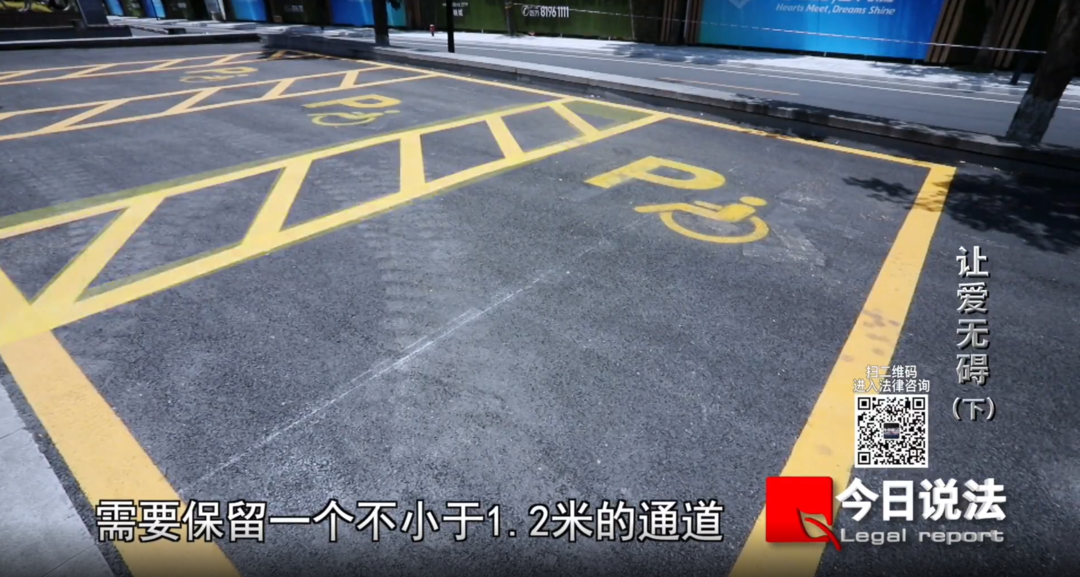 “这是一个标准的无障碍停车位,和普通车位比起来,无障碍停车位需要保留一个不小于1.2米的通道,是为了满足残疾人放置轮椅的特殊需要。残疾人上车前,通常会将轮椅拆卸,放在车上,等到了目的地,再将轮椅组装好。如果没有这个通道,残障人士将无法上下车。”