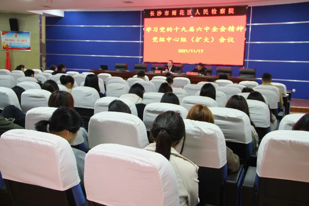 11月16日-19日,岳麓区检察院先后召开党组(扩大)会议、科室会议、党支部会议,传达学习贯彻党的十九届六中全会精神。会议要求,全院上下一定要切实提高思想认识和政治站位。准确领会党的十九届六中全会精神的丰富内涵和精神实质,深学笃信力行,切实以六中全会精神武装头脑、指导实践、推进工作;切实把十九届六中全会精神转化为谋划推动检察事业高质量发展的动力;把学习贯彻十九届六中全会精神与做好当前工作紧密结合起来,补短板,优强项,开展工作冲刺,为全面建设社会主义现代化新岳麓贡献检察力量。