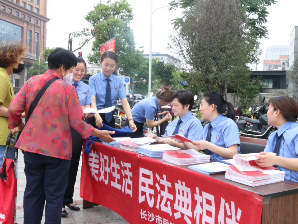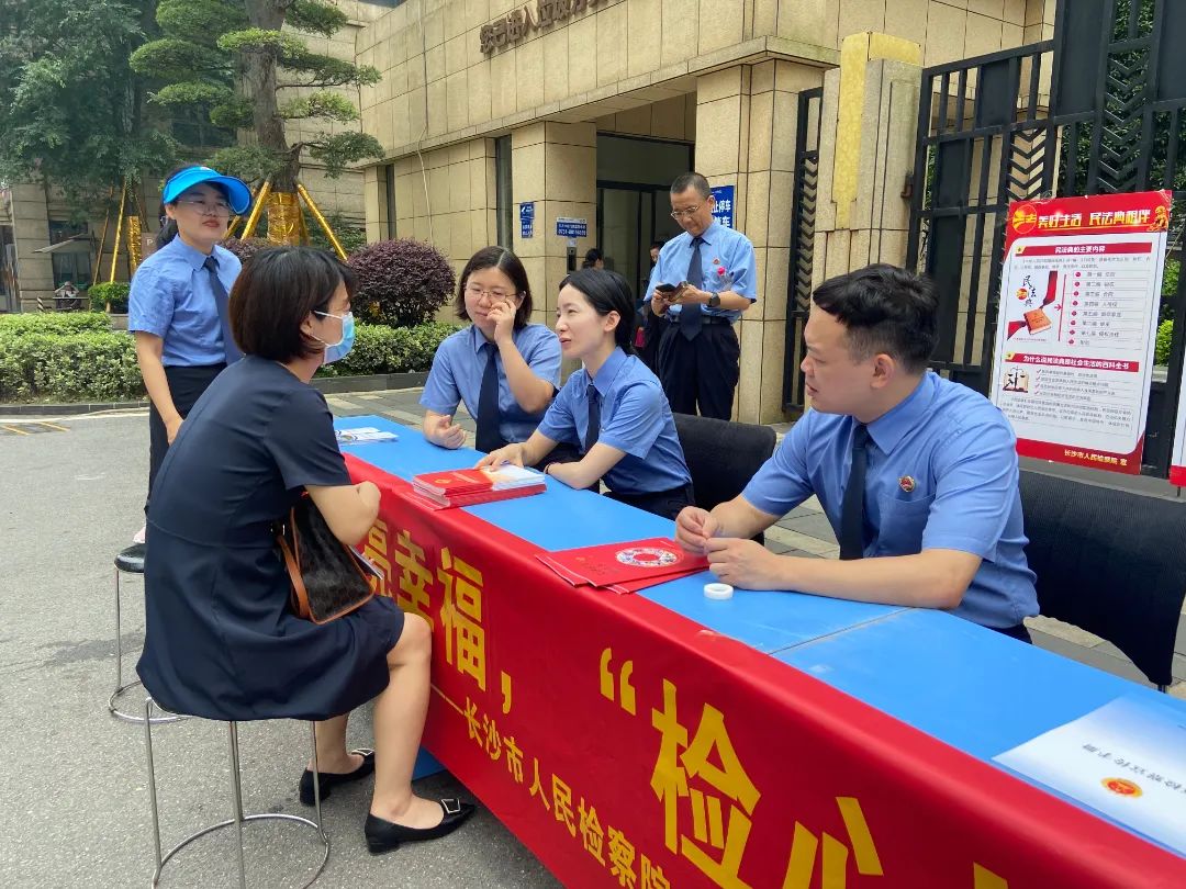 、天心区、岳麓区检察院民事检察干警纷纷走进社区,通过悬挂标语、放置展板、发放宣传手册、提供法律咨询、以案释法等方式,向群众宣传普及侵权责任、合同纠纷、婚姻家庭等方面的热点法律知识以及检察机关民事检察职能。活动现场,广大市民积极参与,就自身遇到的急难愁盼问题,向检察干警进行法律咨询,干警们从专业的角度一一答疑解惑。此次活动共发放宣传手册500余份,现场接受法律咨询100余人次。