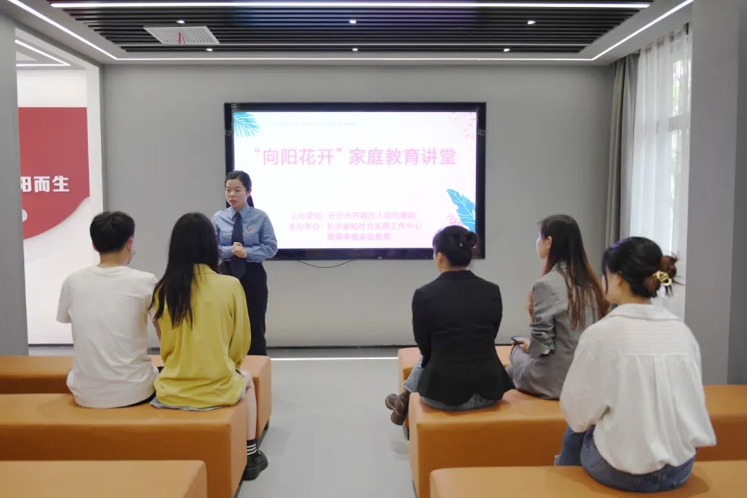 “向阳花开”家庭教育指导讲堂是开福区检察院联合共青团区委探索的由涉罪未成年人及其监护人共同参与的家庭教育指导模式。采取提升未成年人和监护人的法治意识与解决监护人主体意识不强、家庭教育方式不当等问题多管齐下的方式,运用授课讲座、心理咨询、互动交流等多元化手段,帮助涉罪未成年人与监护人修复亲子关系,助力未成年人健康成长。