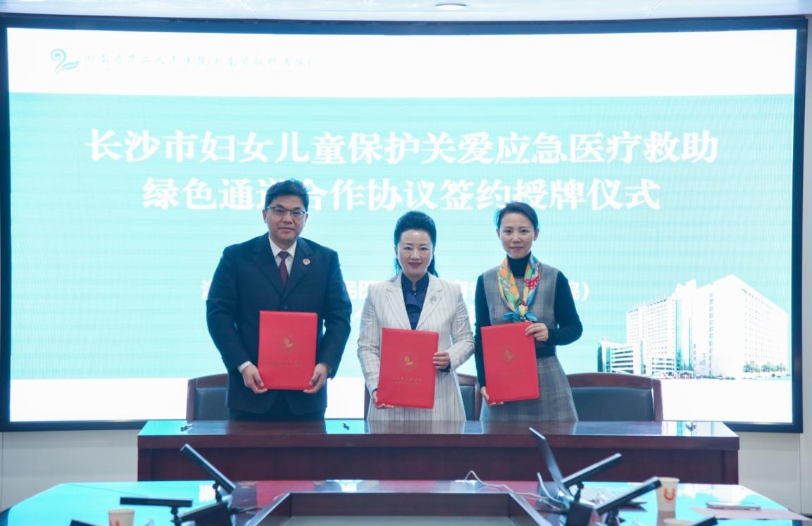 长沙市妇女联合会主席彭娟、脱裤吧 副检察长廖耀群、湖南省第二人民医院院长胡崇宇等出席签约授牌仪式。